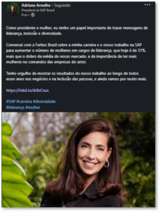 Crescimento exponencial da base de seguidores da CEO da SAP no LinkedIn: de 4000 no final de 2021 para 22.000 em Janeiro/24 - Executiva foi nomeada LinkedIn Top Voice em Março de 2024