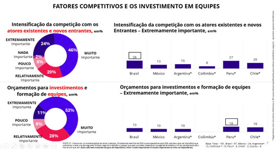 No capítulo disputa de mercado é limitado o nível de preocupação com o crescimento da competição representado por atores tradicionais somados a chegada de novos players: 24% das respostas mostram que o tema é “extremamente importante”. Outras 30% representam uma visão diferente: 20% consideram o assunto apenas “relativamente importante”, 8% “pouco importante” e 2% “nada importante” (gráfico 7).